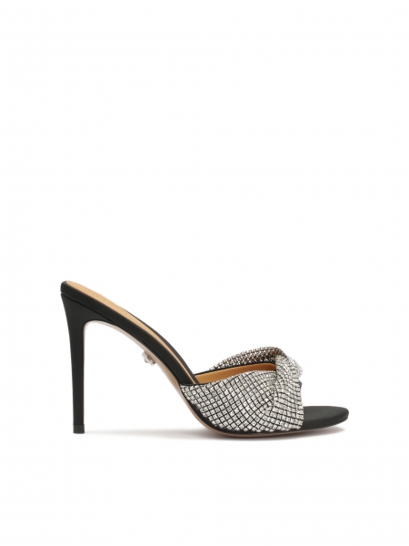 A kiváló minőségű, ezüstszínű kristályokkal borított szemcsés bőrből készültfekete esti táska az elegáns öltözékek kitűnő része. A merev konstrukció pisztolyhúzókkal kivételesen elegánsan néz ki. A látszólag kompakt méret ellenére a táska belseje meglepően tágas, és minden szükséges tárgy elfér benne.