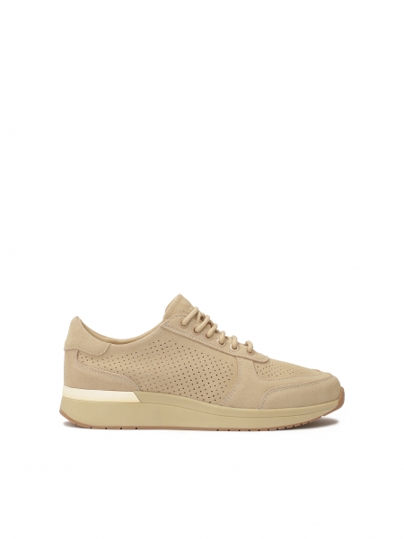 A kiváló minőségű szemcsés bőrből készült keskeny bézs női öv sok öltözék elengedhetetlen kiegészítője. Univerzális jellege lehetővé teszi, hogy gyakorlatilag bármilyen ruhadarabhoz illeszkedjen. Jól fog mutatni nadrágokkal, szoknyákkal, valamint egy ruha vagy kabát derekára kötve. Az egyszerű formájú öv, amelyet csak egy klasszikus, arany színű négyzetes csattal gazdagítottak, nagyon elegánsnak és finomnak tűnik.