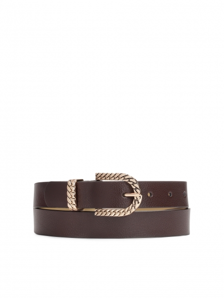 A kiváló minőségű szemcsés bőrből készültbarna táska egy kompakt modell, amely vonzó steppelésével vonzza a tekintetet. Az átlósan elhelyezett varrás háromdimenziós vizuális hatást kelt, és a táska rendkívül puha és kellemes tapintású. A futártáska szabása tökéletes lesz az esti és alkalmi stílus elegáns, finom kiegészítőjeként egyaránt. A táska kétféleképpen viselhető: vállon vagy kézben. Ezt a lehetőséget egy lánc biztosítja, amely a patentban lévő fémszemeken keresztül húzódik, ennek köszönhetően szabadon mozgatható és hosszában állítható. A minimalista forma és az arany elemekkel szembeállított bőr elegáns jellege klasszikusnak és stílusosnak tűnik.