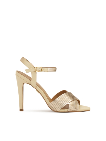 A finom bézs árnyalatú, természetes bőrből készült, puffos hatású, kifinomult kézitáska elegáns és modern megjelenésű. A nagyméretű patentot fémlánccal ellátott pánt díszíti, amely lehetővé teszi, hogy a táskát kényelmesen a kezében hordhassa, a kezét mögé csúsztatva. A modell levehető arany lánccal van ellátva, így a vállon vagy a váll fölött is viselhető, ami sokoldalúan felhasználható kiegészítővé teszi. A bézs szín az arany részletek csillogásával kombinálva harmonikus egészet alkot, amely tökéletesen illik a klasszikus és a modern esti megjelenéshez egyaránt.
