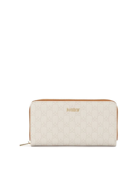Természetesbőrből készült kompakt pénztárca, amelyet finom elegancia és modern stílus jellemez. Külseje tört fehér színű, ami finom megjelenést kölcsönöz neki, és az egészet diszkrét bézs vállalati dizájn díszíti, ami luxusérzetet kölcsönöz. A pénztárca belseje puha barna bőrből készült, amely meleg kontrasztot alkot a világos részével. A barna klasszikus bájt és eleganciát kölcsönöz. A pénztárca kompakt mérete és könnyű kialakítása miatt kényelmes a mindennapi használatra, ugyanakkor luxus kivitelezéssel és funkcionalitással büszkélkedhet.